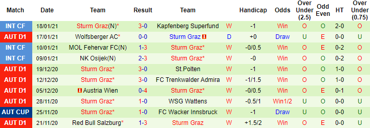 + Thống kê 10 trận gần nhất của Sturm Graz