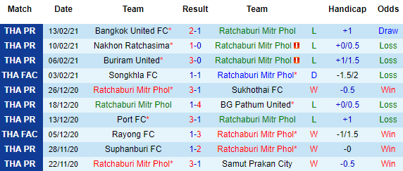 + Thống kê 10 trận gần nhất của Ratchaburi