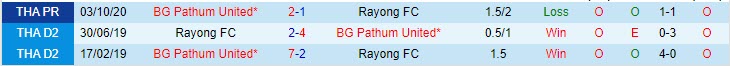 Phong độ và thống kê đối đầu Rayong - Pathum gần đây: