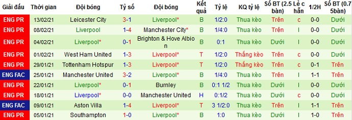 Đáng nói là trong 5 trận đấu gần đây Liverpool thắng 2 và để thua trong cả 3 trận gần nhất. Thành tích sân khách của Liverpool cũng không tốt hơn là bao khi thắng 3 trận và để thua 2 trận, tính cả các trận đấu tại FA Cup.