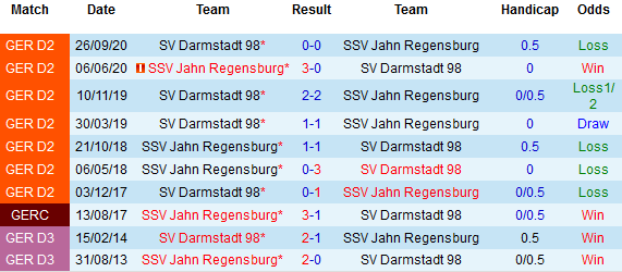 + Lịch sử đối đầu Regensburg vs Darmstadt