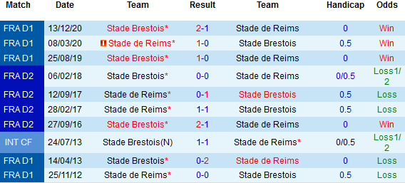 Thành tích đối đầu trên sân nhà không mấy ủng hộ Reims. Dù nhiều lần tạo ra những cú sốc trước các đối thủ lớn như PSG hay Marseille nhưng Reims lại trở thành miếng mồi ngon cho Brest.