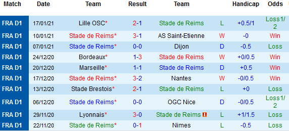 Trong 6 lần tiếp đón Brest gần nhất, có tới 5 trận đã kết thúc với kết quả kém vui dành cho Reims và họ thậm chí còn không ghi được bàn thắng tới 4 trận trong đó. Ở thời điểm hiện tại, đội chủ nhà vừa gây thất vọng khi bị Lille đánh bại với tỷ số 1-2 ở vòng gần nhất.
