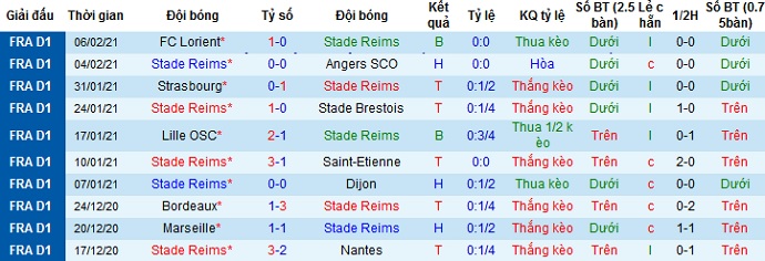 + Thống kê 10 trận gần nhất của Reims