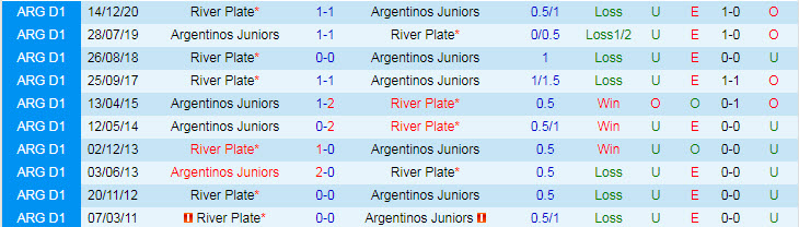 Phong độ và thống kê đối đầu River Plate - Argentinos Juniors gần đây: