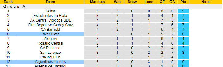 Trở lại với trận đấu muộn nhất vòng 4 giải VĐQG Argentina diễn ra vào sáng mai, River Plate trở về sân nhà để tiếp đón Argentinos Juniors và với phong độ thực tế, họ tự tin sẽ giành trọn 3 điểm để bám đuổi top 4 của bảng A giải VĐQG Argentina – nhóm sẽ tham dự vòng bảng vô địch ở giai đoạn 2.