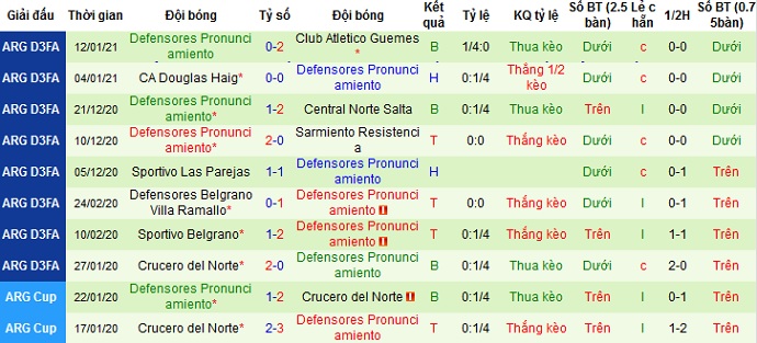 + Thống kê 10 trận gần nhất của Pronunciamiento