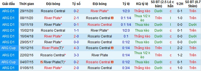 + Lịch sử đối đầu River Plate vs Rosario Central