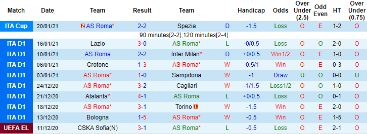 Mọi thứ đều cho thấy Roma vượt trội so với Spezia. Thế nhưng trận đấu sắp tới Roma lại khó hứa hẹn dễ dàng giành chiến thắng. Rạng sáng 20/1 vừa qua, Spezia đã cầm hòa Roma 2-2 sau 90 phút và sau đó đả bại Bầy sói ngay trên sân Olimpico với tỷ số 4-2 ở Cúp quốc gia Italia.