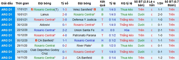 Trong 5 trận gần đây Rosario Central thắng 2 trận, hòa 1 và để thua 2 trận gần nhất. Ngay trên sân nhà thành tích của đội bóng cũng khá thất thường, và ở 5 trận đấu gần nhất tại đây Rosario Central cũng chỉ có được 2 trận thắng, 1 trận hòa và 2 trận thua.