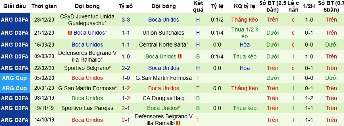 + Thống kê 10 trận gần nhất của Boca Unidos