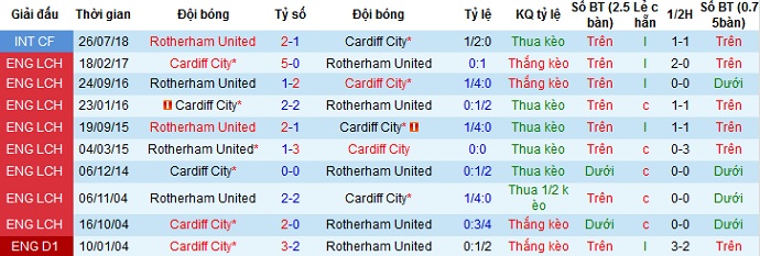 Đáng nói là trong 5 lần đối đầu trước đó thành tích của 2 đội là ngang nhau khi mỗi đội thắng 2, hòa 1 và để thua 2. Vào lúc này Rotherham United đang rất cần điểm cho cuộc chiến trụ hạng, trong khi phong độ sân khách của Cardiff City không thật sự tốt nên chọn cửa dưới có lẽ vẫn là phương án an toàn hơn.