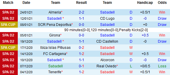 + Thống kê 10 trận gần nhất của Sabadell