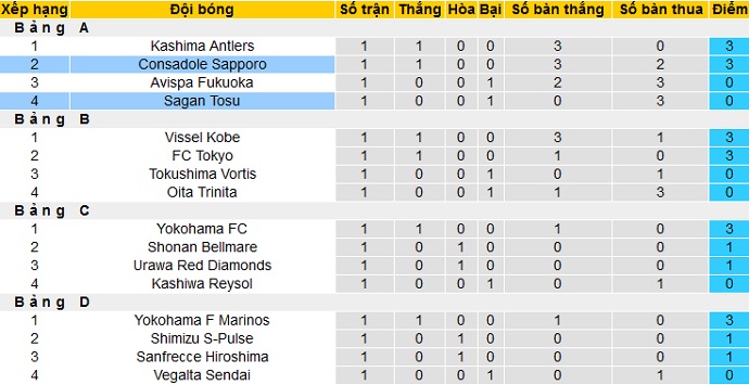 Bảng xếp hạng cúp liên đoàn Nhật Bản
