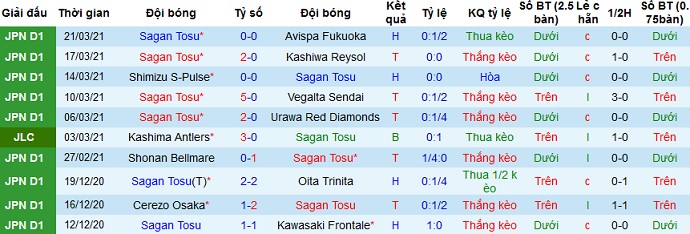 + Thống kê 10 trận gần nhất của Sagan Tosu