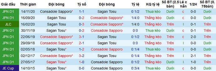 Tỷ lệ kèo Sagan Tosu vs Consadole Sapporo