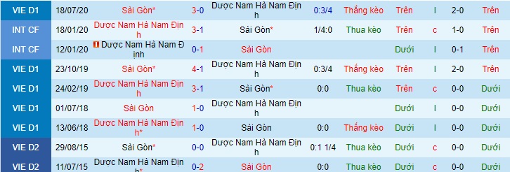 Phong độ và thống kê đối đầu Sài Gòn vs Nam Định gần đây