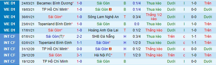 + Thống kê 10 trận gần nhất của Sài Gòn