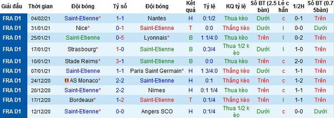 + Thống kê 10 trận gần nhất của Saint-Etienne