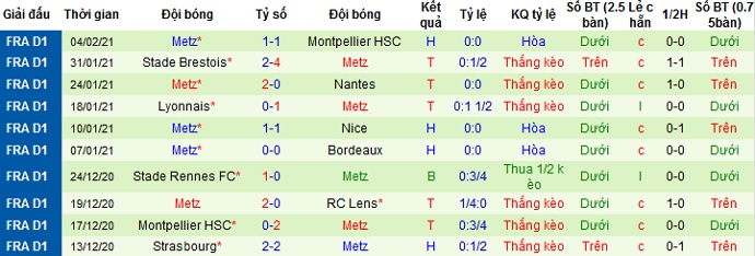Phong độ của Metz khá ổn định trong thời gian gần đây khi đang bất bại 6 trận liên tiếp với 3 trận thắng và 3 trận hòa. Trên sân khách thành tích của Metz cũng không hề tệ với 3 trận thắng, 1 trận hòa và 1 trận thua ở 5 lần du đấu gần nhất.