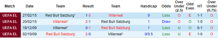 Phong độ và thống kê đối đầu Salzburg vs Villarreal