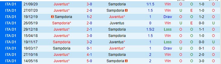 Phong độ và thống kê đối đầu Sampdoria vs Juventus gần đây: