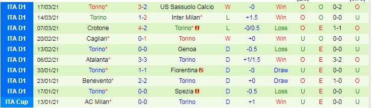 + Thống kê 10 trận gần nhất của Torino