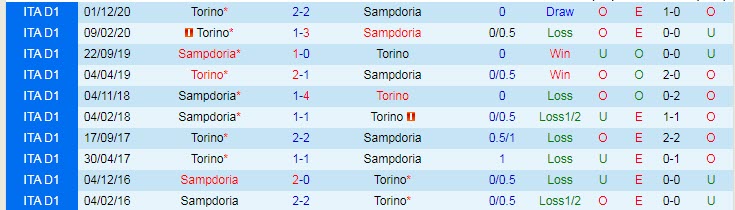 Phong độ và thống kê đối đầu Sampdoria - Torino gần đây: