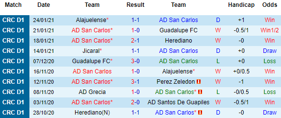 + Thống kê 10 trận gần nhất của San Carlos