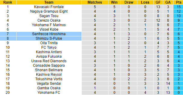 Phong độ và thống kê đối đầu Sanfrecce Hiroshima vs Shimizu S-Pulse