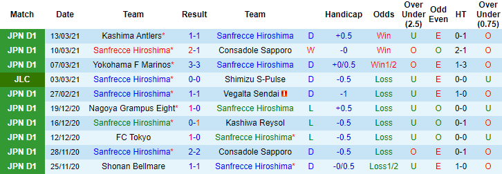 + Thống kê 10 trận gần nhất của Sanfrecce Hiroshima