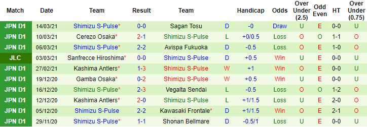 + Thống kê 10 trận gần nhất của Shimizu S-Pulse