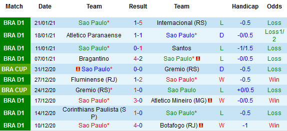Liên tiếp 4 vòng gần nhất chỉ biết đến hòa và thua tại Serie A và bị loại khỏi Cúp QG là hình ảnh đáng báo động mà Sao Paulo thể hiện. Thế nên, không còn nhiều nhà đầu tư còn đủ kiên nhẫn tin tưởng vào đội chủ nhà với thành tích nghèo nàn như vậy.