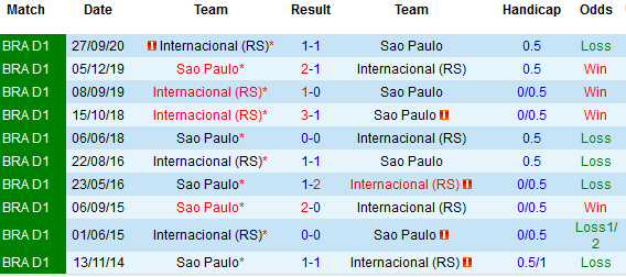 + Soi tỷ lệ kèo châu Á: Liên tiếp 8 trận gần nhất đều chứng kiến Internacional vượt qua tỷ lệ châu Á. Ở chiều ngược lại, Sao Paulo vừa phụ bạc lòng tin của nhà đầu tư cả 4 trận gần đây.