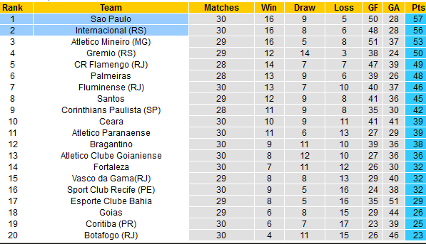 Đội chủ nhà mất điểm cả 3 vòng gần nhất khiến cơ hội đoạt chức vô địch của họ bị đe dọa nghiêm trọng. Quan trọng hơn, phong độ đi xuống trông thấy nói trê đã khiến Sao Paulo suy giảm đáng kể về tinh thần.