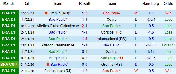 + Thống kê 10 trận gần nhất của Sao Paulo