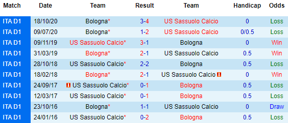 + Lịch sử đối đầu Sassuolo vs Bologna