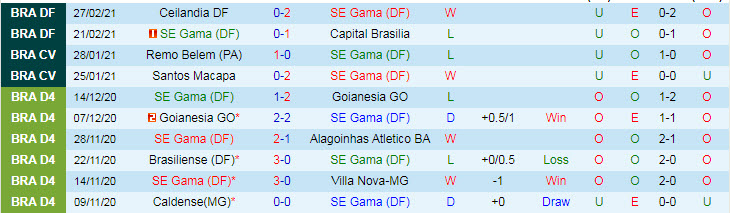 Trong khi đó, SE Gama là đội bóng thua kém hoàn toàn về đẳng cấp khi chơi tại giải hạng 4 Brazil. Nhìn qua, SE Gama có chút lợi thế về mặt tâm lý khi được chơi trên sân nhà.