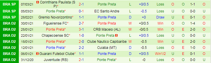 Phong độ và thống kê đối đầu SE Gama - Ponte Preta gần đây: