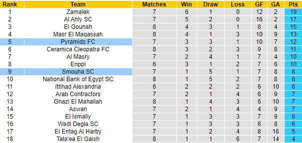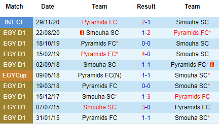 Lịch sử đối đầu gần đây cho thấy sự nhỉnh hơn từ phía Pyramids khi họ thắng 3 trong số 4 lần gặp gỡ mới nhất với Semouha. Đây cũng là điều dễ hiểu khi thời gian qua, Pyramids cho thấy sự đầu tư và tham vọng lớn hơn so với đội chủ nhà trong trận này.