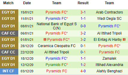 Trong khi đó, Pyramids đang có vị trí thứ 5 và nếu thắng trận này họ sẽ vươn lên top 3 và hy vọng bám đuổi 2 đối thủ đứng đầu. Nên nhớ vị trí thứ 3 sẽ được dự đấu trường tương đương với Cúp C2 của châu Phi.