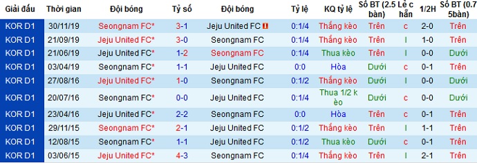 + Lịch sử đối đầu Seongnam vs Jeju United