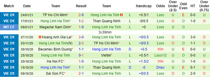 Trong khi đó Hồng Lĩnh Hà Tĩnh sau 2 trận vẫn chưa có điểm số nào, ghi 1 bàn, thủng lưới 4 lần và đang xếp ở vị trí áp chót trong số 14 đội tham dự V-League mùa này. Tính trên mọi đấu trường, Hồng Lĩnh Hà Tĩnh có 10 trận liên tiếp không thắng gần đây (thua 8, hòa 2).