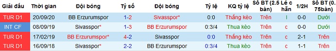 + Lịch sử đối đầu Sivasspor vs Erzurum