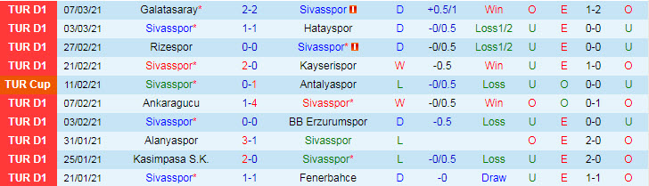 + Thống kê 10 trận gần nhất của Sivasspor