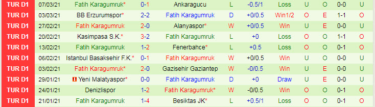 + Thống kê 10 trận gần nhất của Fatih Karagumruk