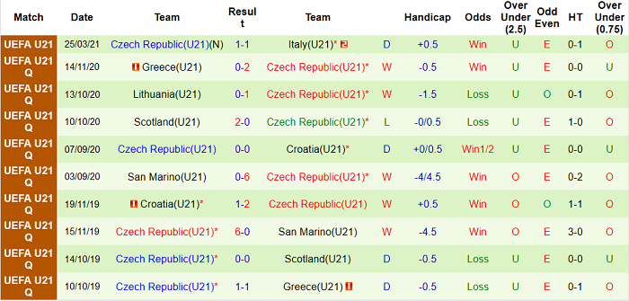 - Thống kê 10 trận gần nhất của CH Czech U21