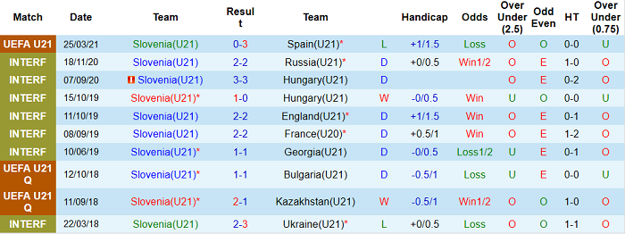 - Thống kê 10 trận gần nhất của Slovenia U21