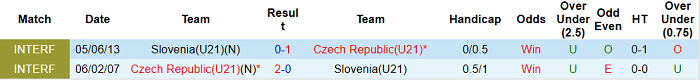 Lịch sử đối đầu cũng cho thấy CH Czech U21 chẳng hề ‘ngán’ Slovenia U21. Hai lần chạm trán trước đây với Slovenia U21, CH Czech U21 đều có được niềm vui trọn vẹn và thậm chí không phải nhận bàn thua nào.