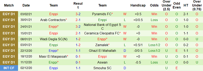 - Thống kê 10 trận gần nhất của ENPPI Cairo